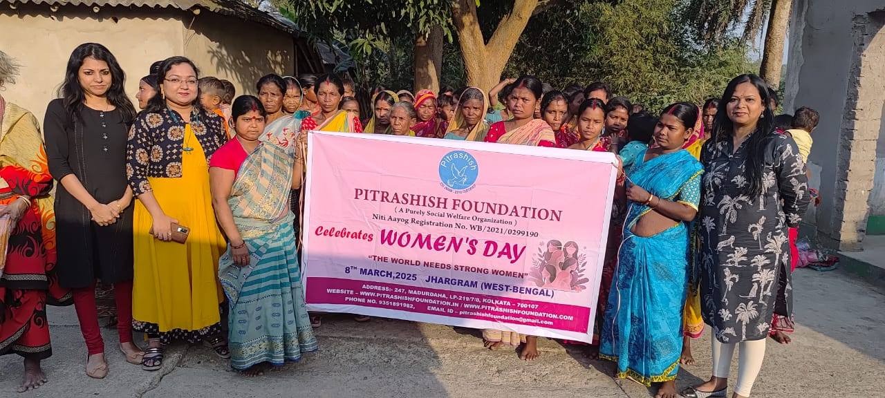 Team Pitrashish Foundation at tribal village Kalinagar , Jhargram to celebrate Women's Day on 8th March,2025. We started the camp with token of appreciation by gifting clothes to these women because of the change they brought to their lives. They are now confident and are aware of their rights .