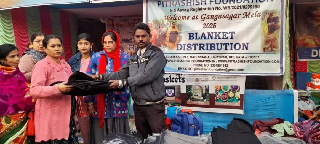 Fortunate for the blessings Pitrashish Foundation have received during the Gangasagar Mela during Makar Sankranti . Donation of Blankets to the Pilgrimages at Gangasagar through Narishakti Foundation Kolkata on 14th January,2025. We appreciate their work during the Gangasagar Mela🙏🙏🙏🙏.