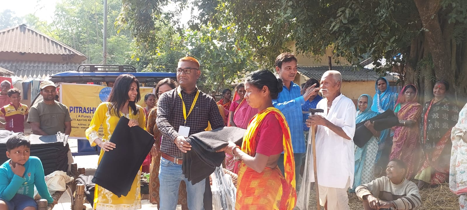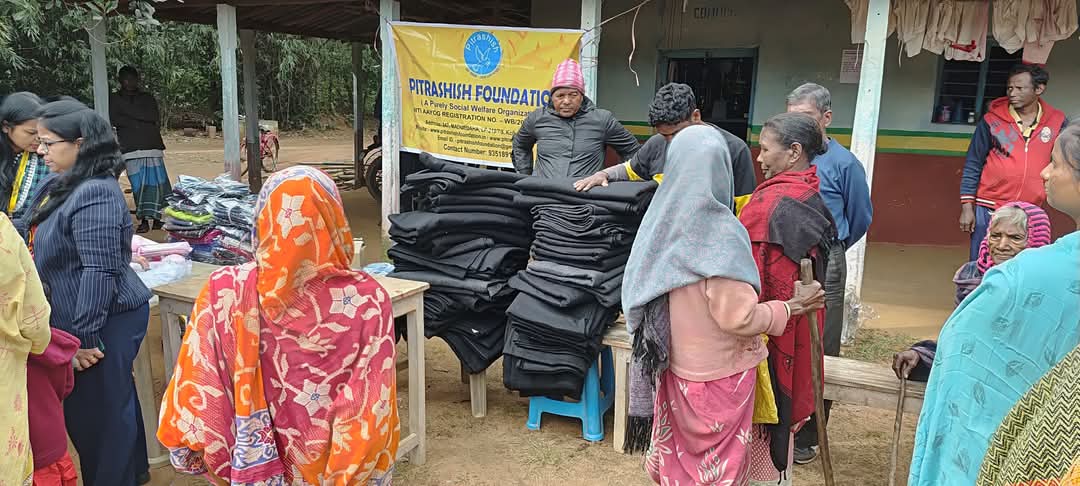 Pitrashish Foundation in Village Dhangri , Jhargram on the mission to provide love and warmth . More than 100 tribal villagers received blankets to fight the freezing temperature of Jhargram on 24th November, 2024.