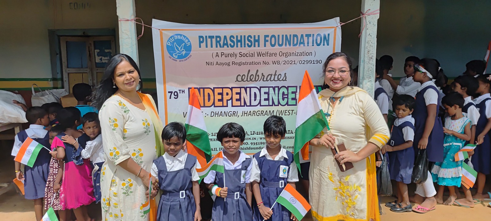 "This Independence Day, Pitrashish Foundation proudly celebrated with the vibrant community of Dhangri village, Jhargram. At our Coaching Centre, our team hoisted the tricolour and enjoyed heartwarming cultural performances by the students. We shared joy and care with 150 children through study materials, and Sweets distribution and empowered 150 women with hygiene support, and provided nutritious food to 15 expecting mothers. True freedom lies in uplifting others – and that’s how we chose to honour 15th August this year.